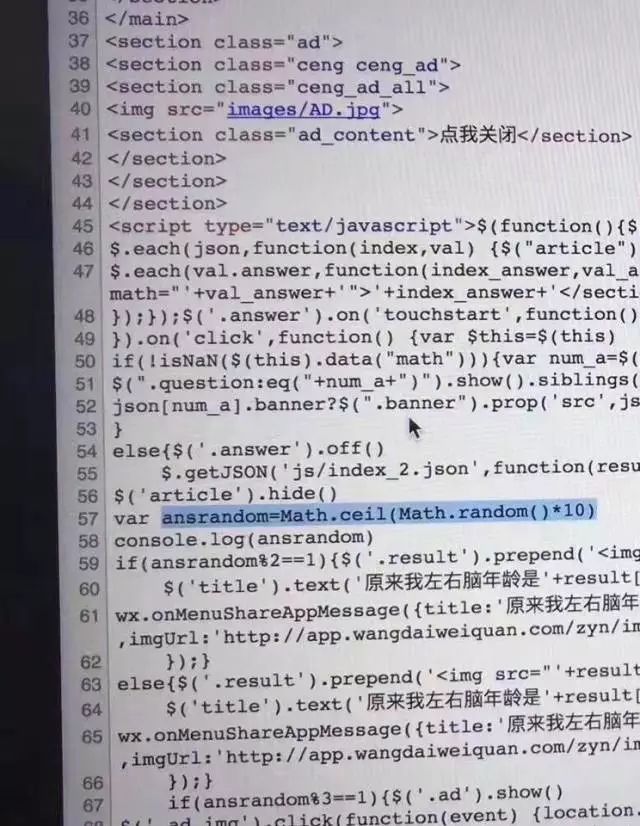 目前,網絡上已經出現過多個版本的“左右腦年齡測試”,代碼原理基本相同,只是年齡范圍會有所調整,“答案是隨機產生的,題目跟腦年齡肯定沒有關系”。