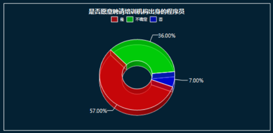 即便個別互聯網企業對聘請僅具備培訓機構學習經驗的開發者猶豫不決,但仍有57%的雇主表示他們可以接受一名培訓機構出來的畢業生擔任軟件工程師角色。