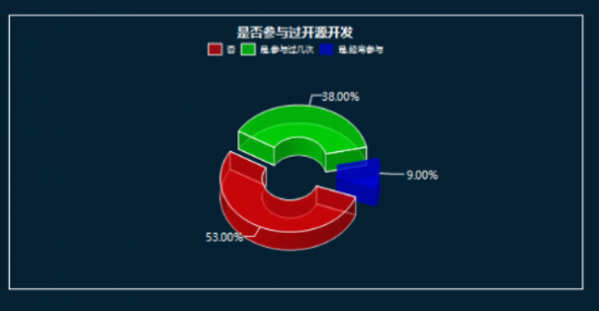 擁抱開源已經成為互聯網公司紛紛追捧的對象,但對于個人開發者而言,頻繁貢獻的群體要比期望值要少得多。根據調查結果顯示,只有 9% 的受訪者經常參與開源項目,53% 的受訪者以前從未參與過開源。